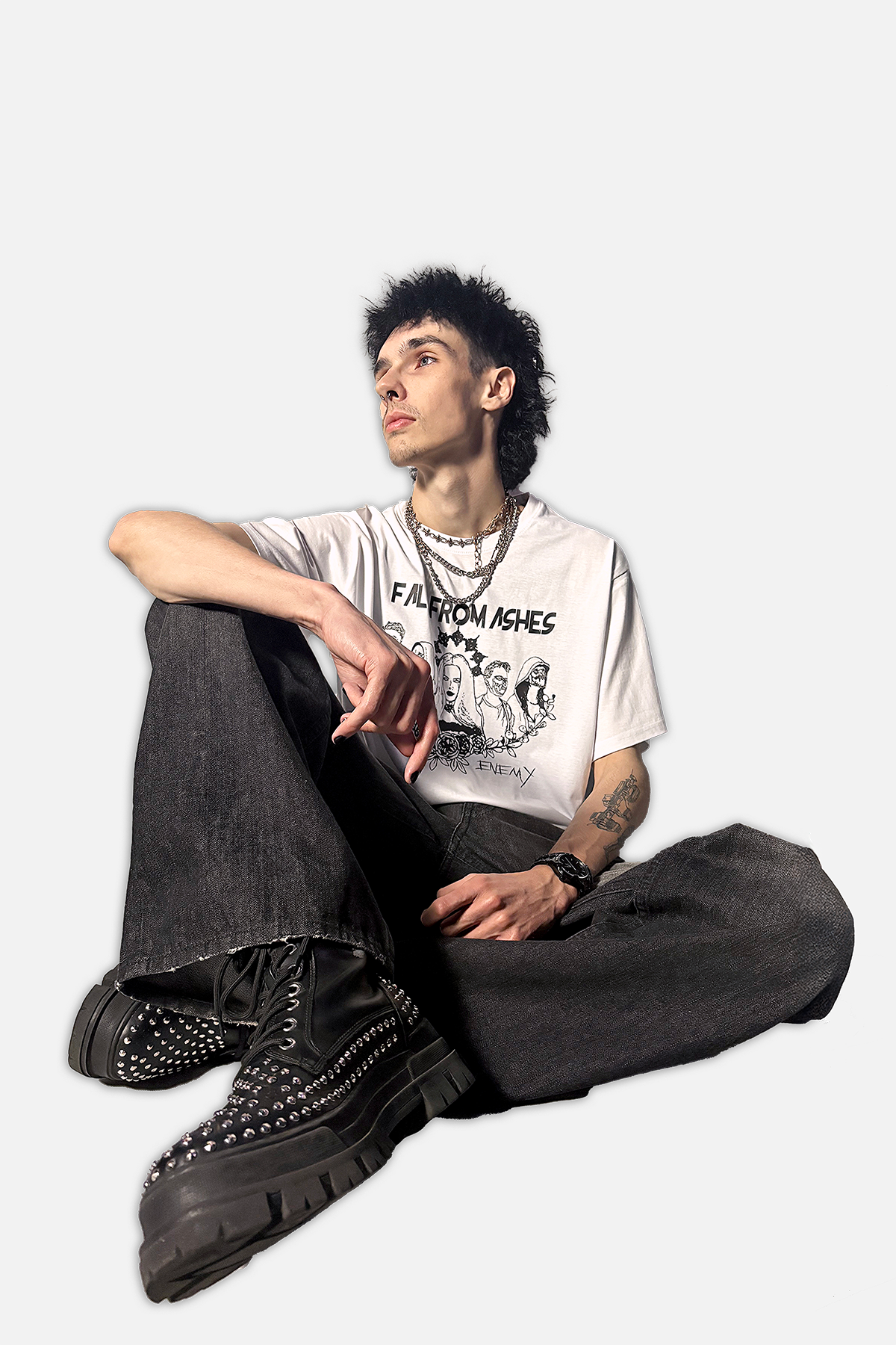 The limited white edition of the “Enemy” t-shirt is a unique piece in the Fall from Ashes collection — a completely different take from the classic black version. On the light background, the band members appear in their demonic, hostile forms from the “Enemy” music video.