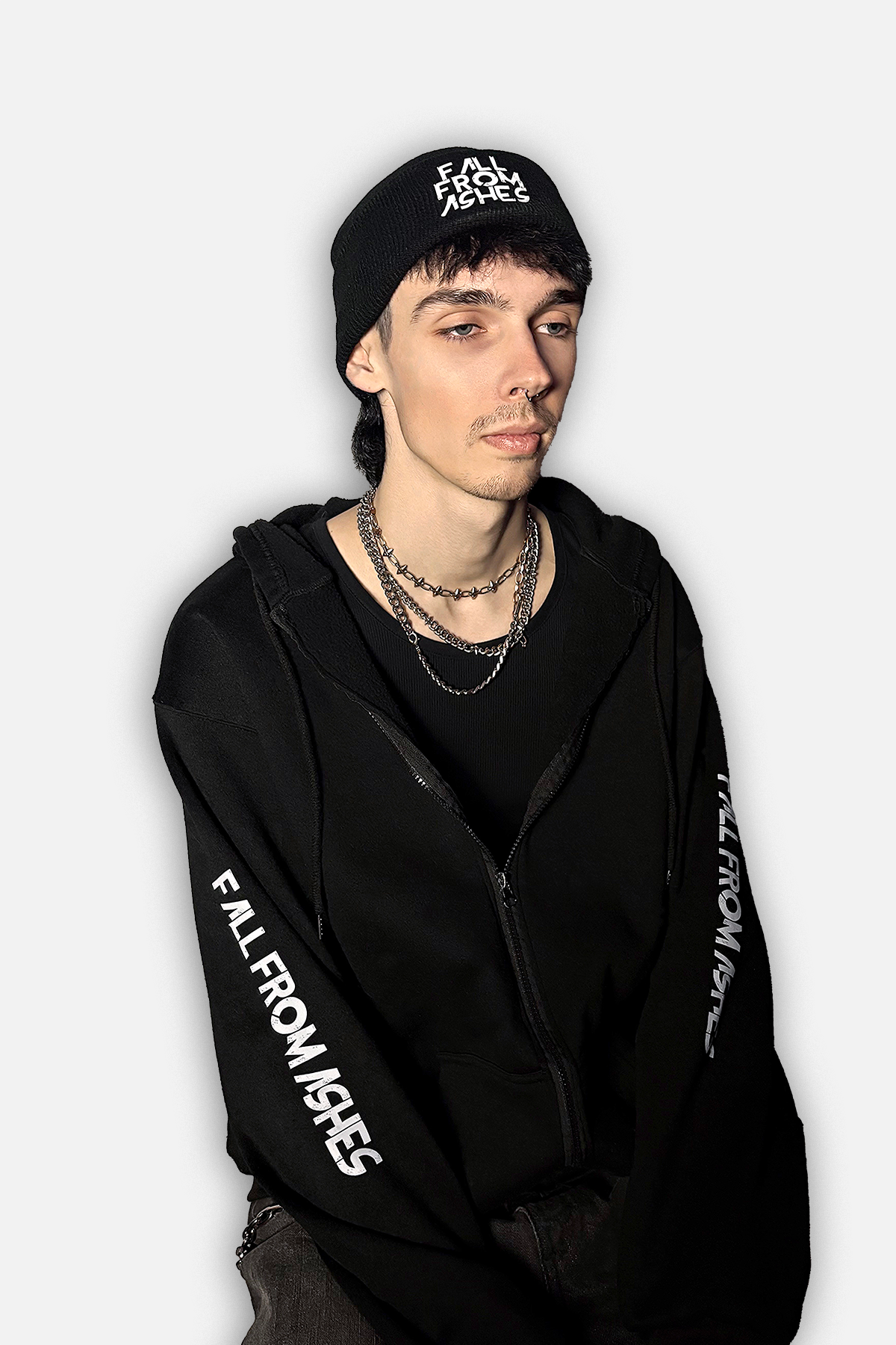 Black winter beanie featuring a minimalist, contrasting Fall from Ashes inscription on the front. Comfortable, warm, and versatile — perfect for chilly days, outdoor concerts, and everyday wear. Fits anyone who loves darkness, music, and great style.